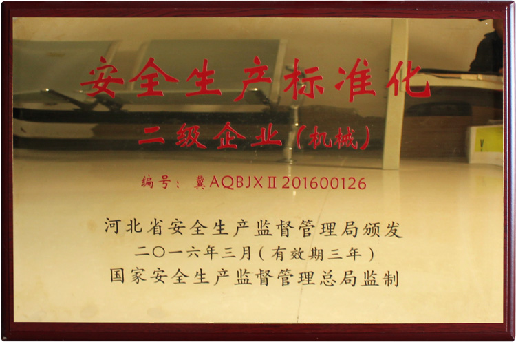 安全生產(chǎn)標(biāo)準(zhǔn)化二級企業(yè)(機(jī)械)